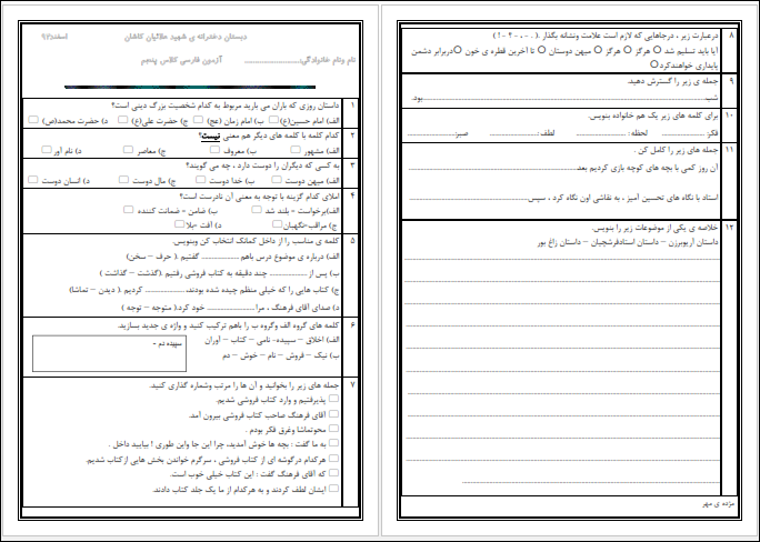چند مورد نمونه سوال و آزمون از دروس مختلف
